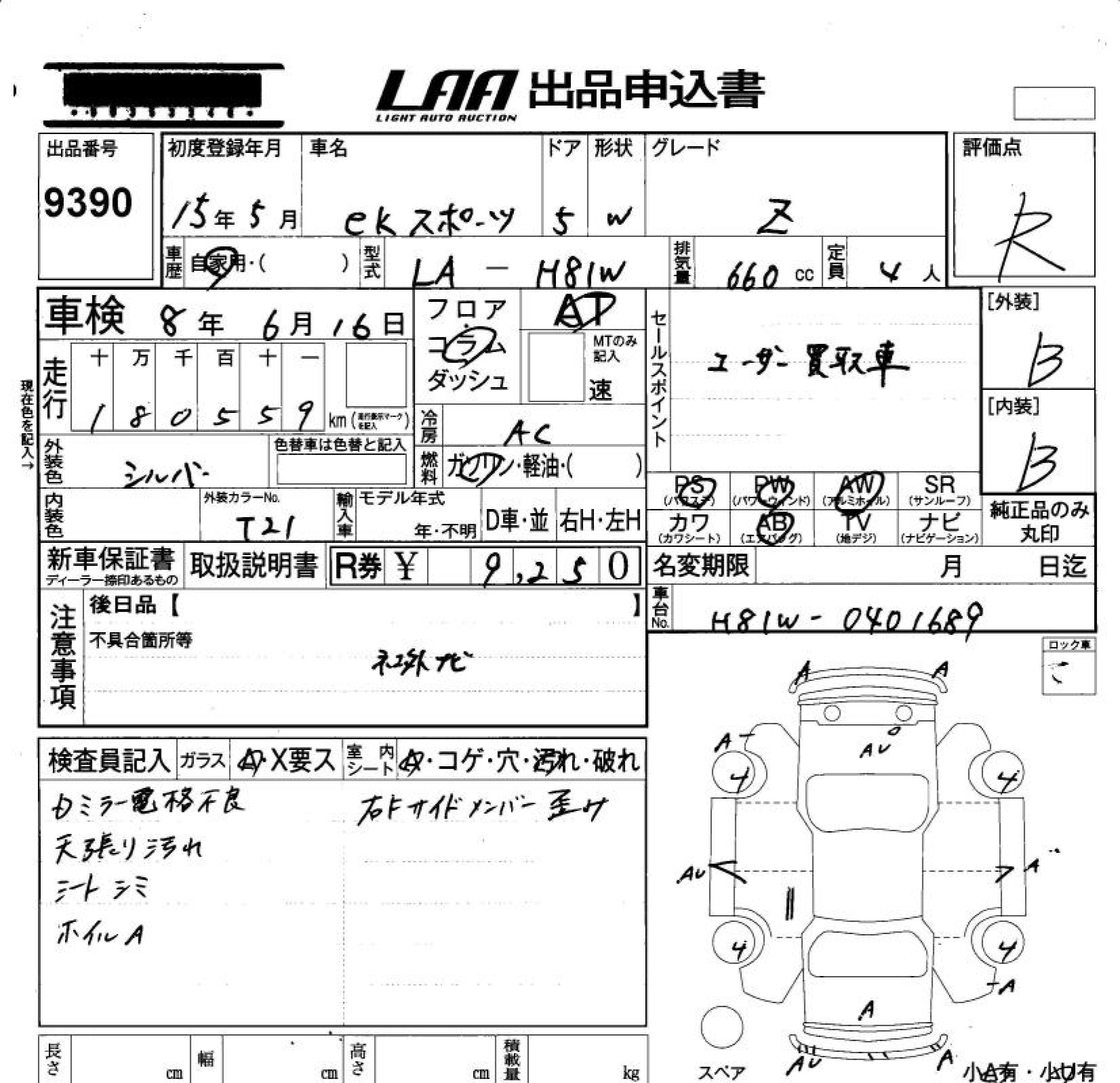 MITSUBISHI EK SPORTS - лот 9390