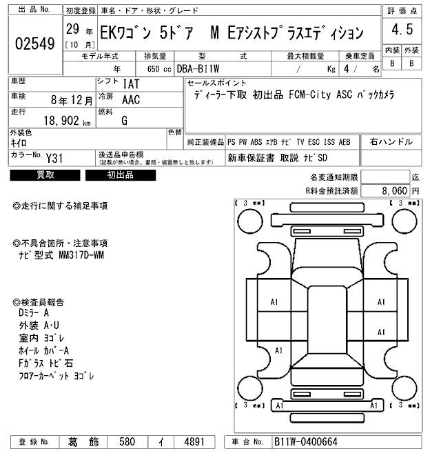 Все аукционы MITSUBISHI EK WAGON