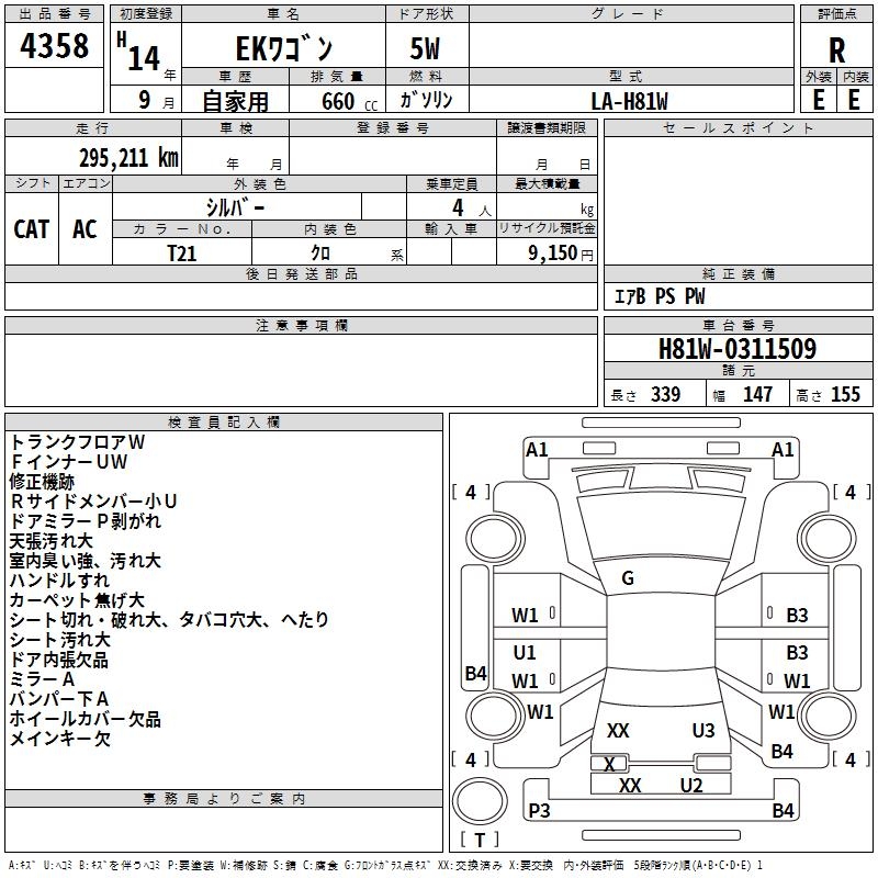 MITSUBISHI EK WAGON - лот 4358