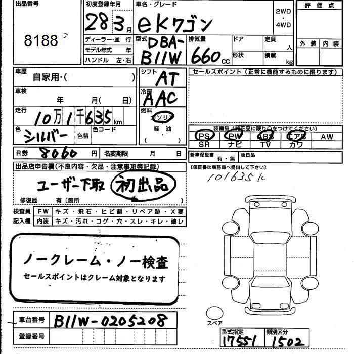 Все аукционы MITSUBISHI EK WAGON