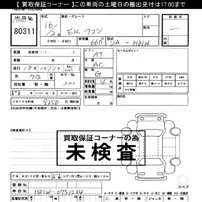 Все аукционы MITSUBISHI EK WAGON