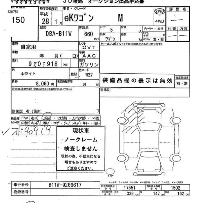 MITSUBISHI EK WAGON - лот 150