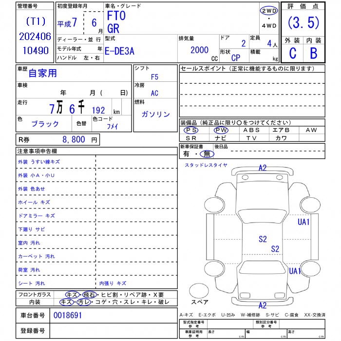 MITSUBISHI FTO - лот 32207