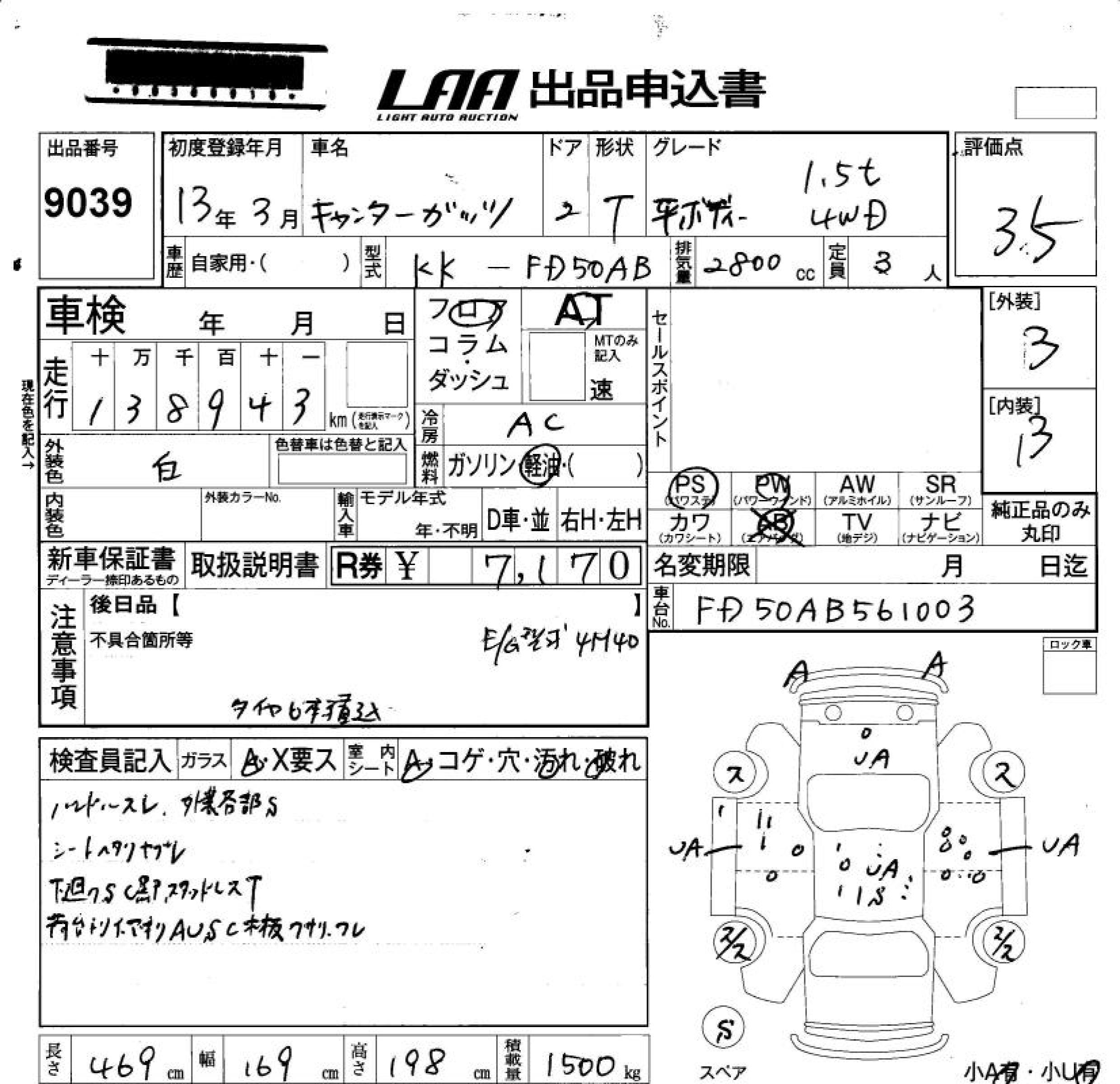 MITSUBISHI FUSO CANTER GUTS FLAT DECK 1.5T 4WD - лот 9039