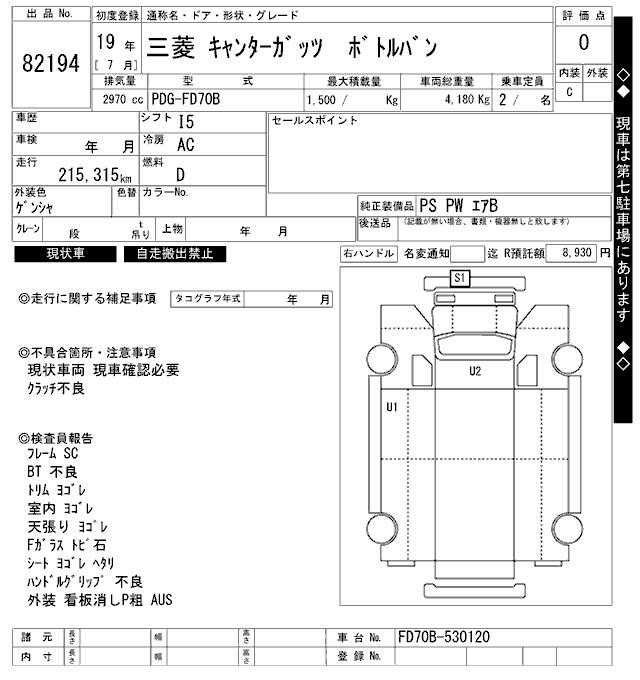 MITSUBISHI FUSO CANTER GUTS BOTTLE VAN - лот 82194