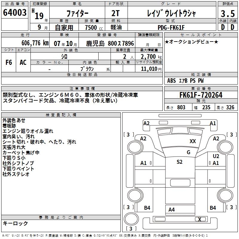 MITSUBISHI FUSO FIGHTER CHILLING REFRIGERATOR - лот 64003