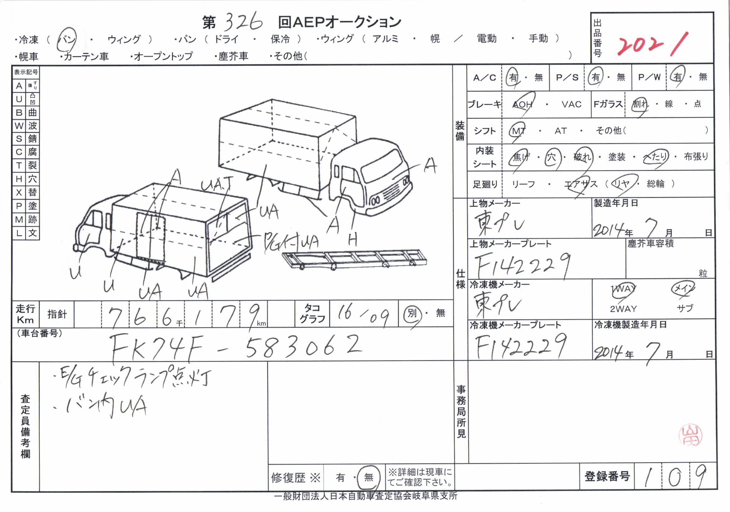MITSUBISHI FUSO FIGHTER CHILLING REFRIGERATOR - лот 2021