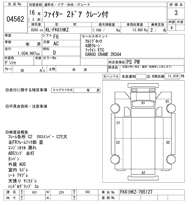 MITSUBISHI FUSO FIGHTER COMMON. CRANE 4 -STEP - лот 4562