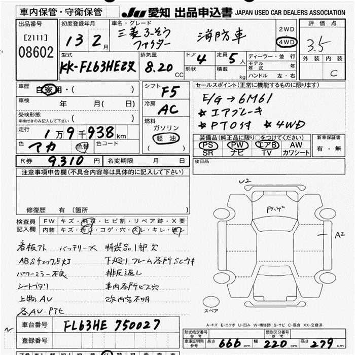 MITSUBISHI FUSO FIGHTER FIRE-SERVICE CAR 4WD - лот 8602