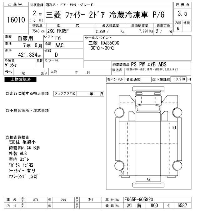 MITSUBISHI FUSO FIGHTER CHILLING REFRIGERATOR - лот 16010