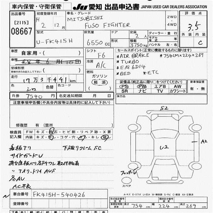 MITSUBISHI FUSO FIGHTER 3.75t - лот 8667