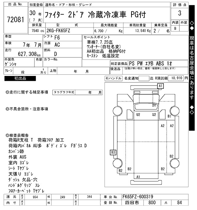 MITSUBISHI FUSO FIGHTER CHILLING REFRIGERATOR - лот 72081