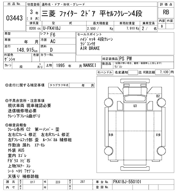 MITSUBISHI FUSO FIGHTER COMMON. SELF CRANE 4 -STEP - лот 3443
