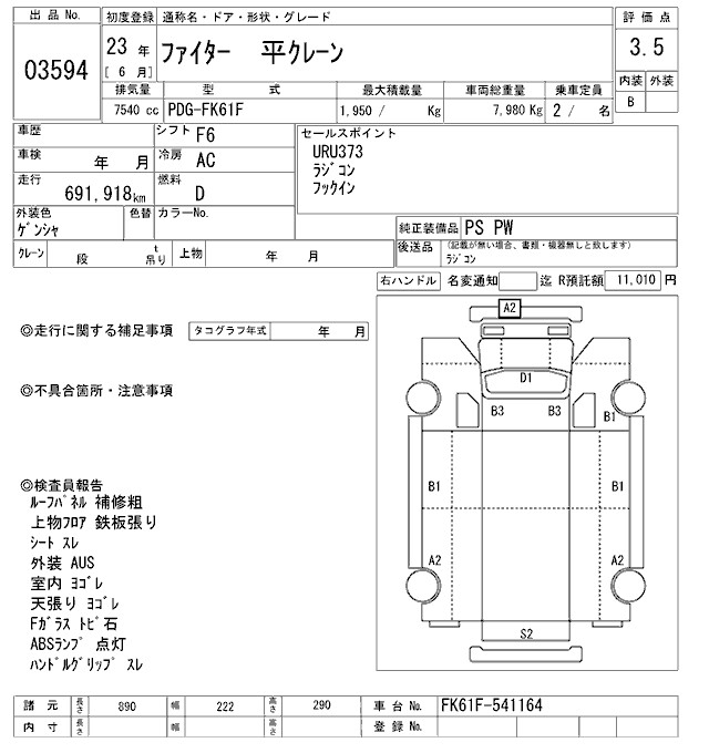 MITSUBISHI FUSO FIGHTER COMMON. CRANE - лот 3594