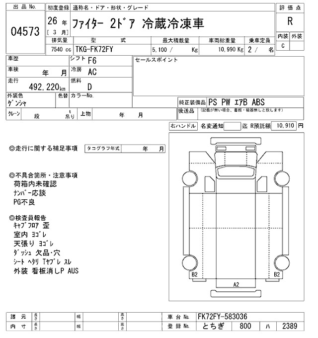 MITSUBISHI FUSO FIGHTER CHILLING REFRIGERATOR - лот 4573