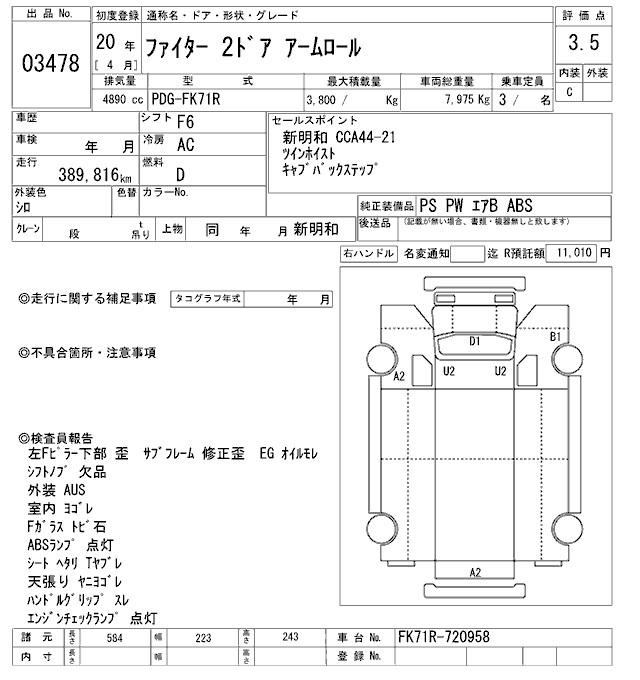 MITSUBISHI FUSO FIGHTER CONTAINER HEAD ARMROLL - лот 3478