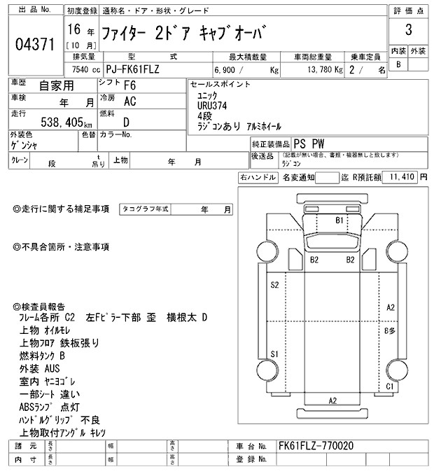 MITSUBISHI FUSO FIGHTER COMMON. CRANE 4 -STEP - лот 4371