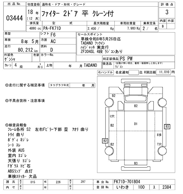 MITSUBISHI FUSO FIGHTER COMMON. SELF CRANE 4 -STEP - лот 3444
