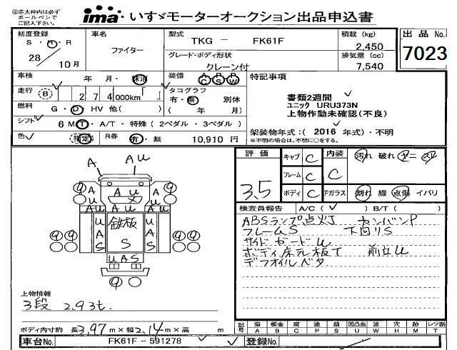 MITSUBISHI FUSO FIGHTER CRANE ATTACHING - лот 7023