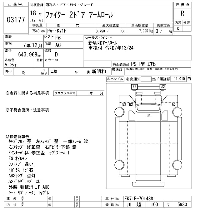 MITSUBISHI FUSO FIGHTER CONTAINER HEAD ARMROLL - лот 3177