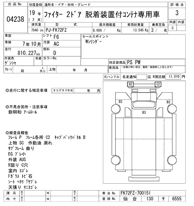 MITSUBISHI FUSO FIGHTER CONTAINER HEAD ARMROLL - лот 4238