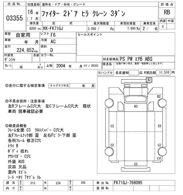 MITSUBISHI FUSO FIGHTER COMMON. CRANE 3 -STEP - лот 3355