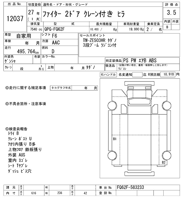 MITSUBISHI FUSO FIGHTER COMMON. CRANE 3 -STEP - лот 12037