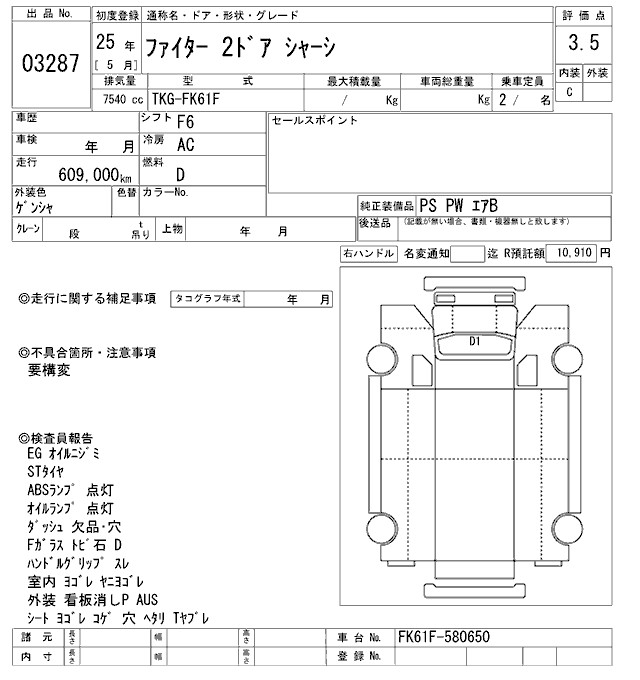 MITSUBISHI FUSO FIGHTER CHASSIS - лот 3287
