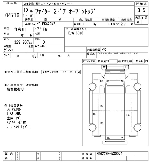 MITSUBISHI FUSO FIGHTER OPEN TOP VAN - лот 4716