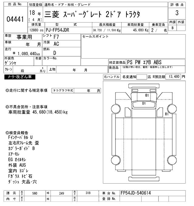 MITSUBISHI FUSO SUPER GREAT TRACTOR HEAD - лот 4441