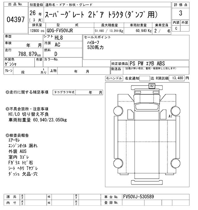 MITSUBISHI FUSO SUPER GREAT TRACTOR HEAD - лот 4397