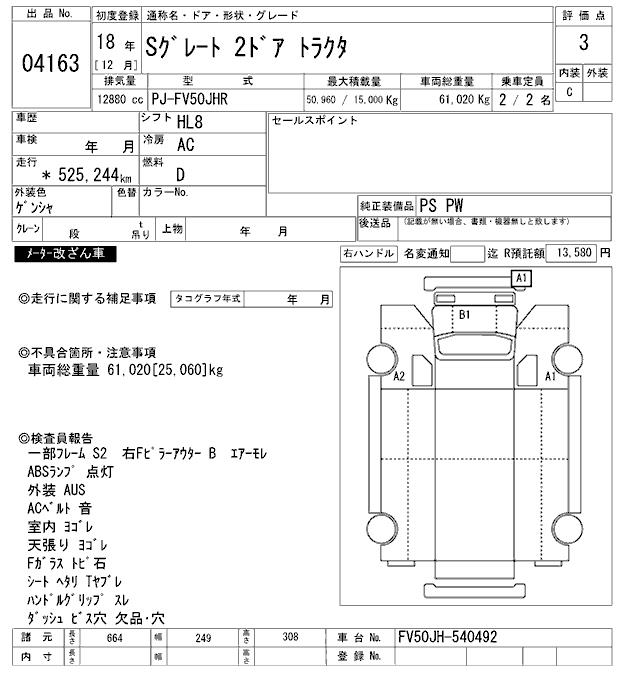 MITSUBISHI FUSO SUPER GREAT TRACTOR HEAD - лот 4163
