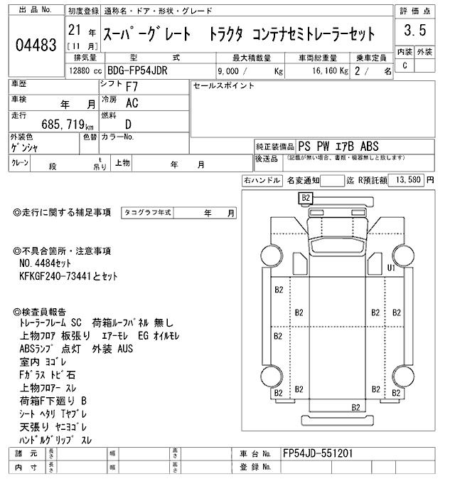 MITSUBISHI FUSO SUPER GREAT TRACTOR SET CONTAINER SEMI TRAILLER - лот 4483
