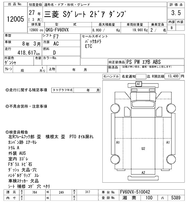 MITSUBISHI FUSO SUPER GREAT DUMP - лот 12005