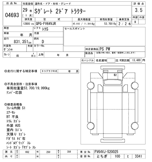 MITSUBISHI FUSO SUPER GREAT TRACTOR HEAD - лот 4693