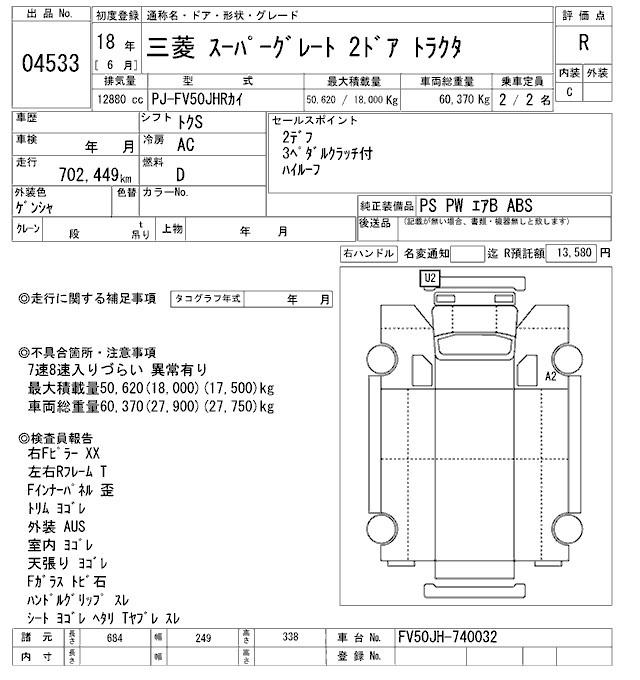MITSUBISHI FUSO SUPER GREAT TRACTOR HEAD - лот 4533
