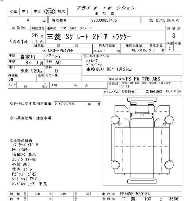 MITSUBISHI FUSO SUPER GREAT TRACTOR HEAD - лот 4414