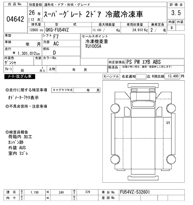 MITSUBISHI FUSO SUPER GREAT CHILLING REFRIGERATOR - лот 4642