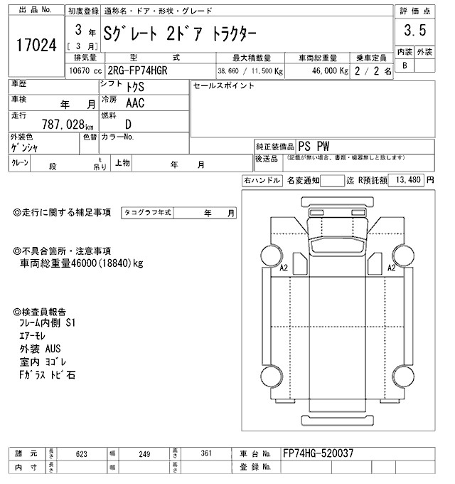 MITSUBISHI FUSO SUPER GREAT TRACTOR HEAD - лот 17024
