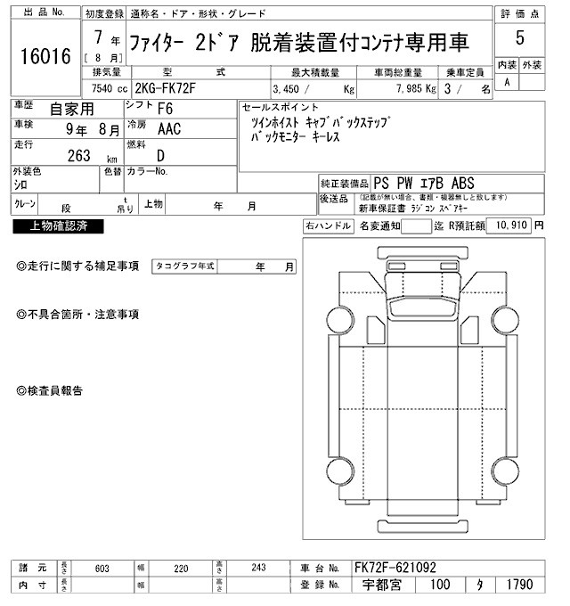 MITSUBISHI FUSO FIGHTER - лот 16016