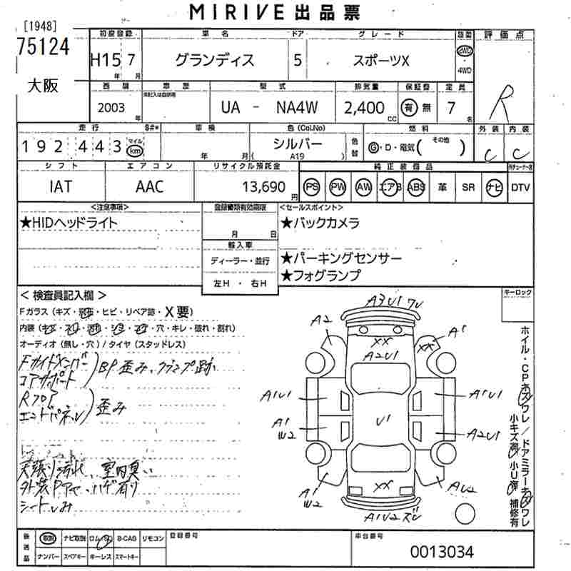 MITSUBISHI GRANDIS - лот 75124