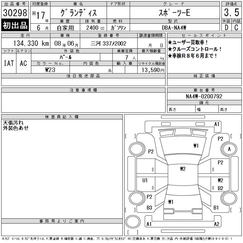MITSUBISHI GRANDIS - лот 30298