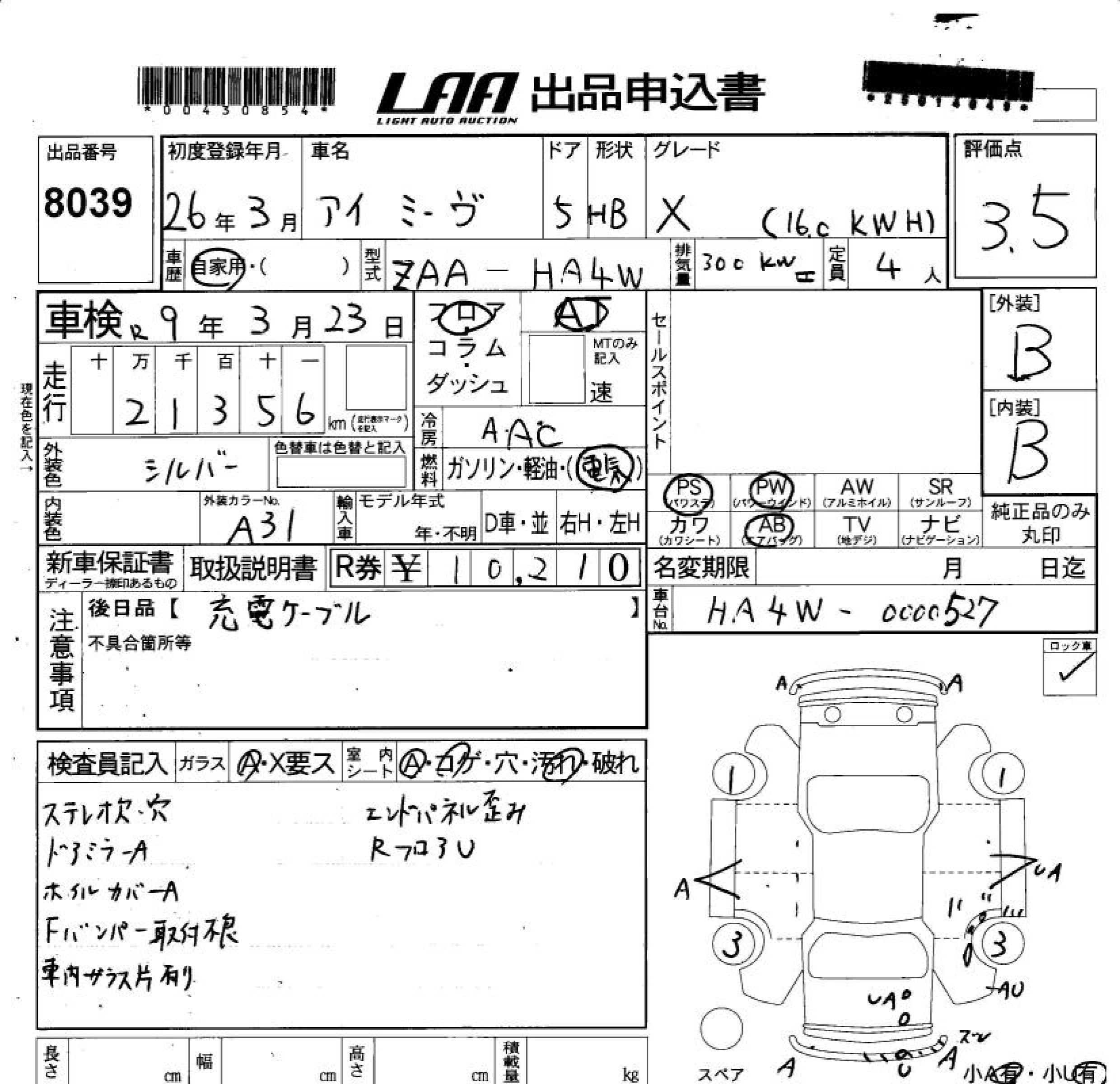 MITSUBISHI I-MIEV X(16.0kwH) - лот 8039