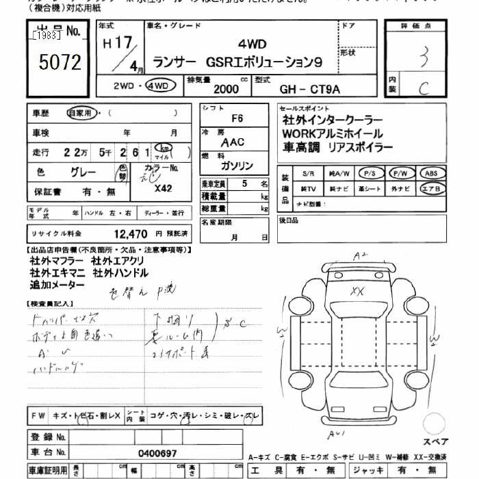 MITSUBISHI LANCER 4WD EVOLUTION 9 GSR - лот 5072