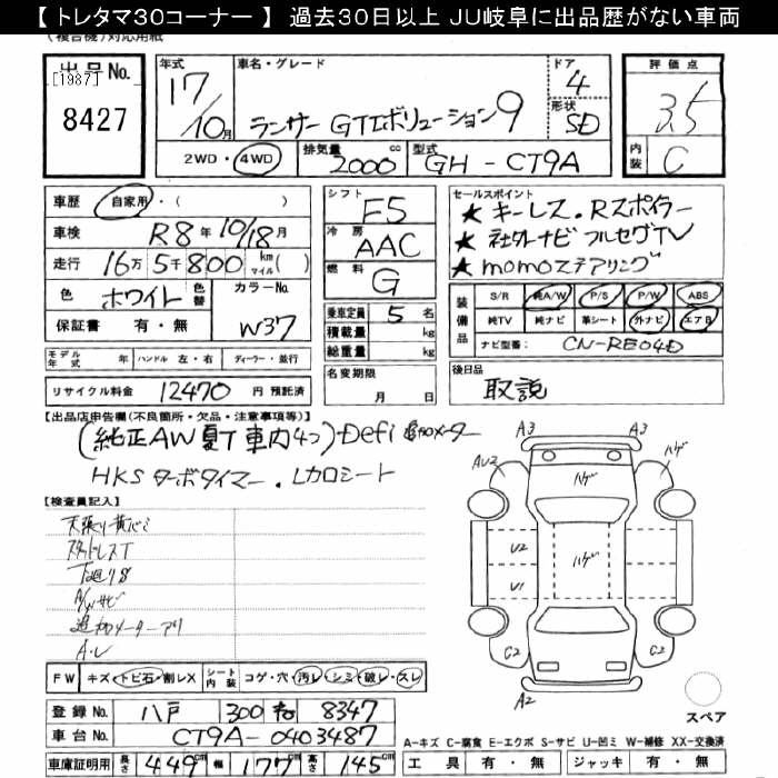 MITSUBISHI LANCER 4WD EVOLUTION 9 GT - лот 8427