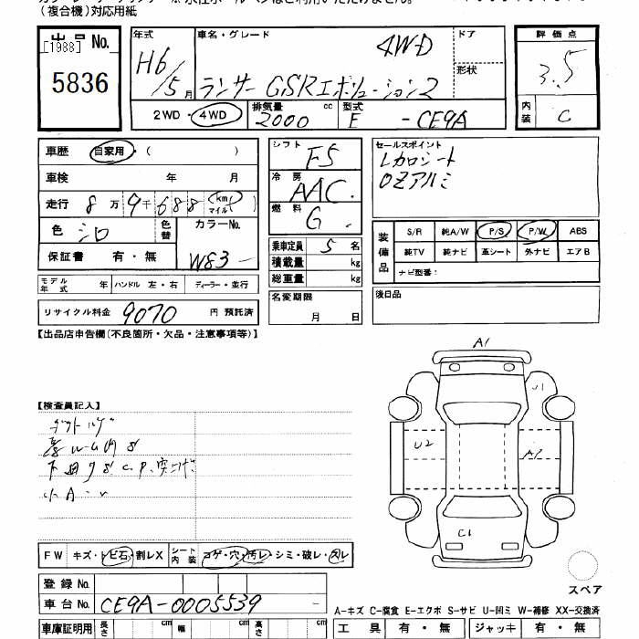MITSUBISHI LANCER 4WD GSR EVOLUTION 2 - лот 5836