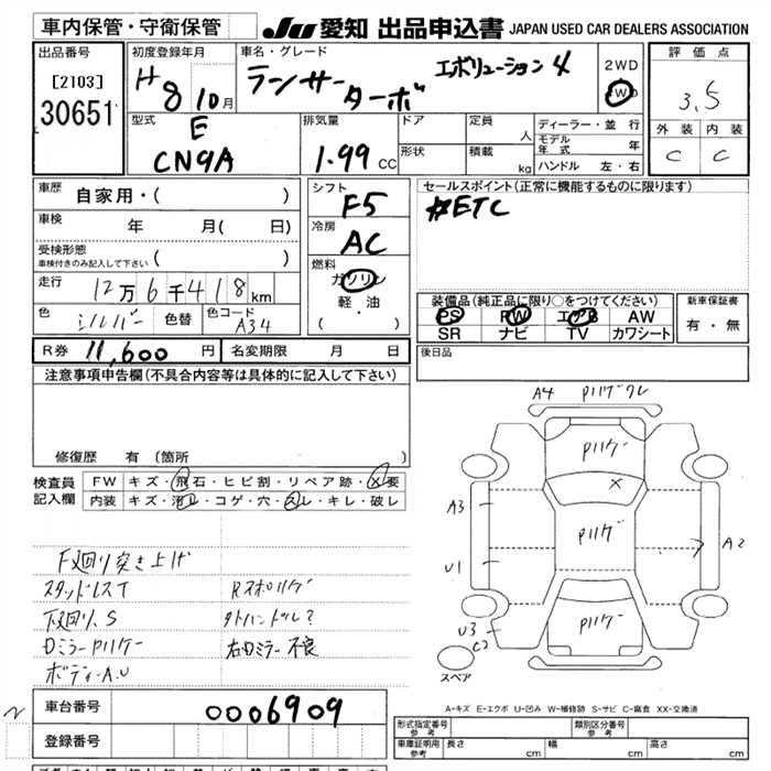 MITSUBISHI LANCER EVOLUTION 4 4WD TURBO - лот 30651