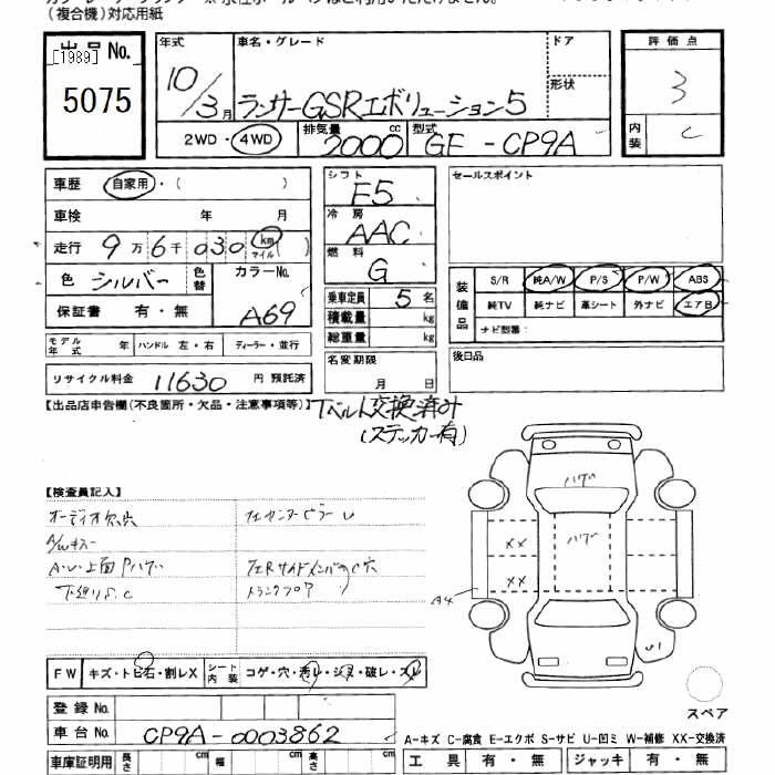 MITSUBISHI LANCER 4WD GSR EVOLUTION 5 - лот 5075
