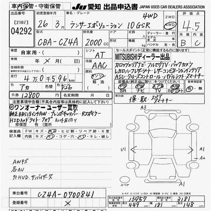 MITSUBISHI LANCER GSR EVOLUTION 10 4WD - лот 4292
