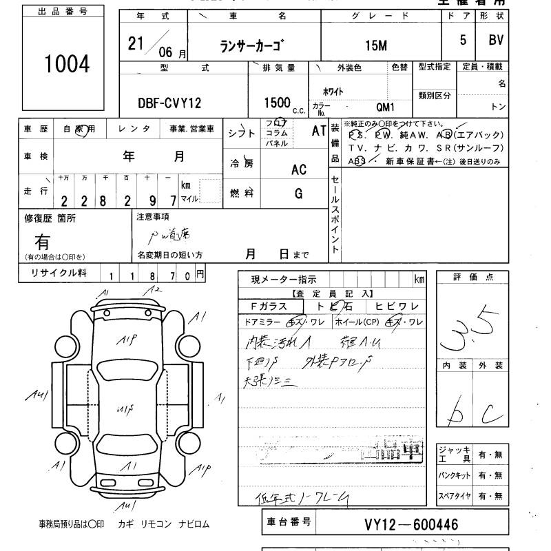 Все аукционы MITSUBISHI LANCER CARGO
